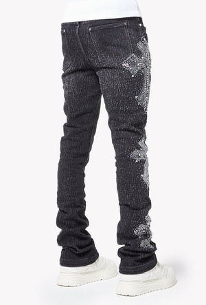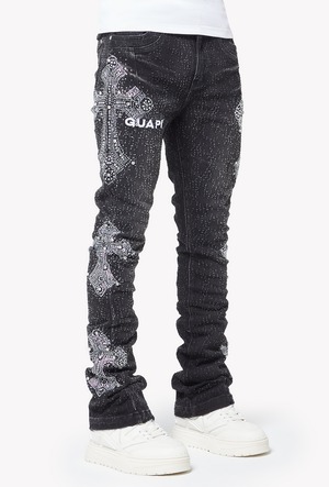 GUAPI / obsidian black distressed cross denim